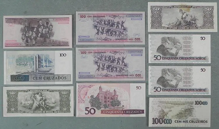 10 Crisp Uncirculated Brazil Paper Money * 10, (4) 500, (3) 100, 500 + 100,000Detail: Uncirculated *