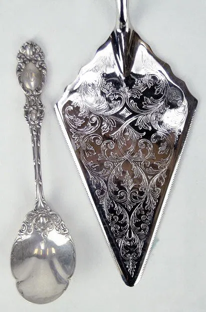 2 PCS SERVING FLATWARE R & W STERLING SILVER SUGAR SPOON & STERLING HANDLED PIE Measures Approximately 11-1/2 Spoon is 6 Inches,