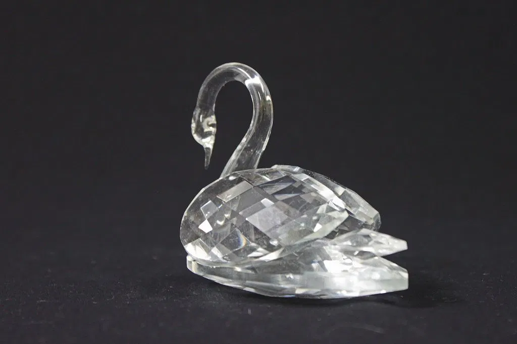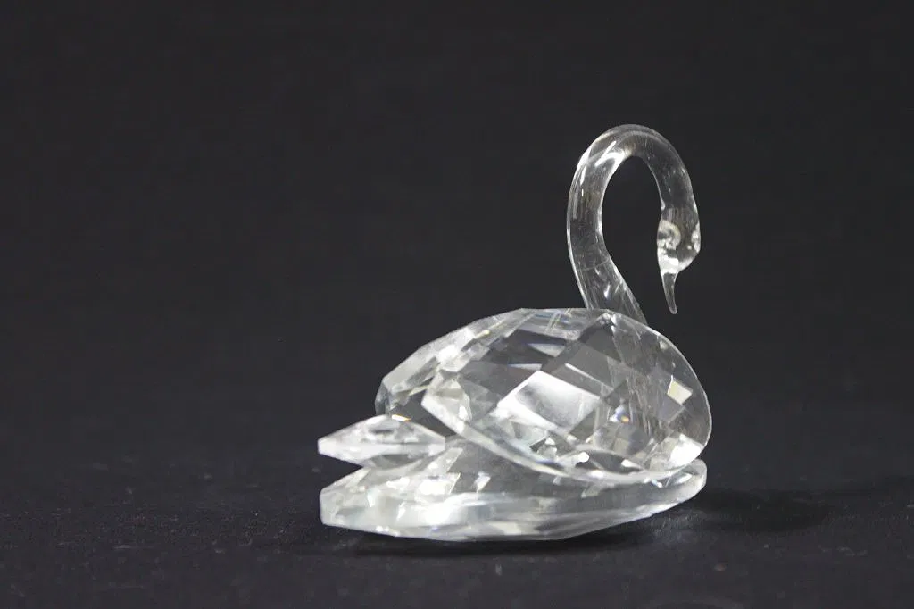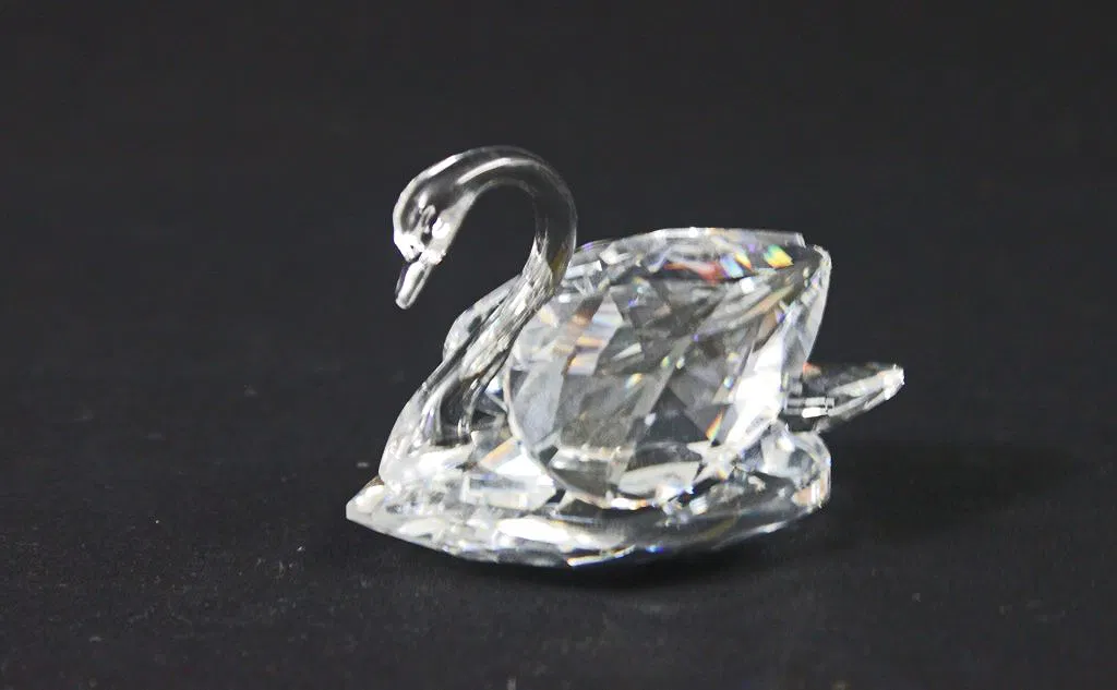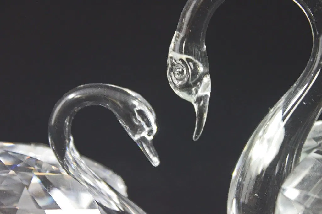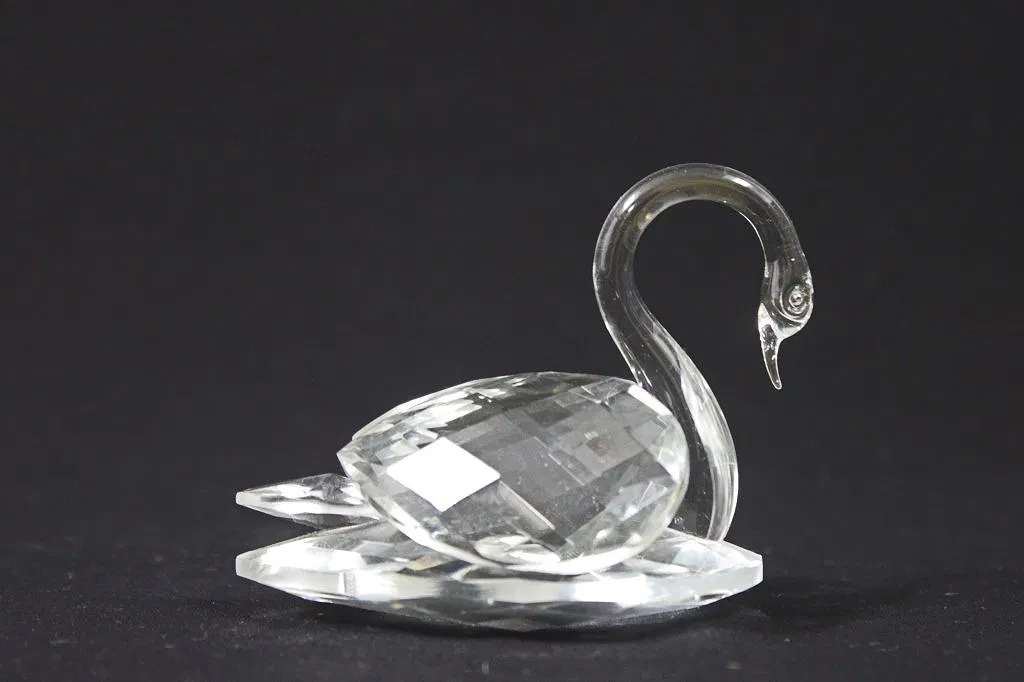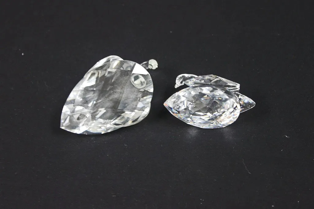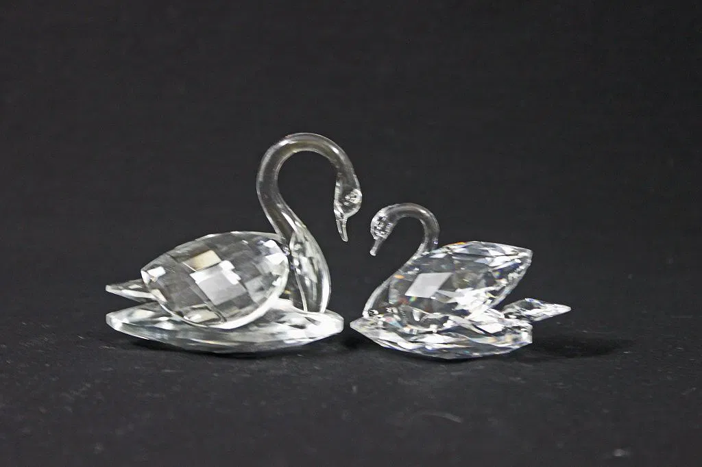 Two Swarovski cut crystal swans signed on bottom. Measurements: Large swan measures 3.5 x 2.25″ x 3.5″. Small swan measures 3″ x 1.75″ x 2.25″ Artist: Swarovski