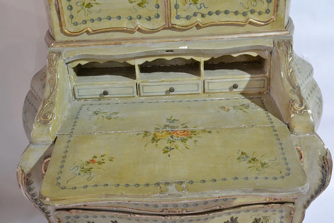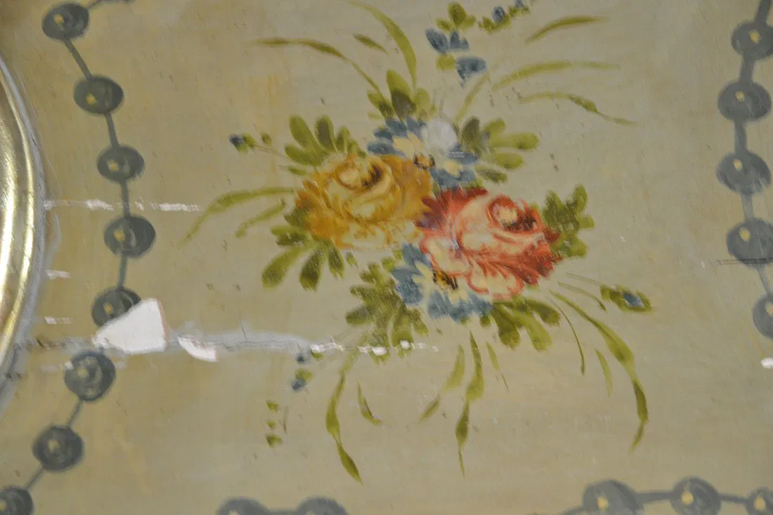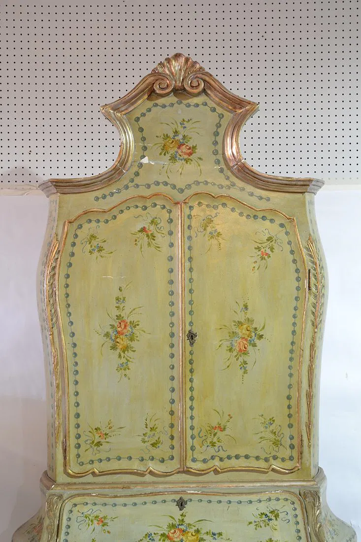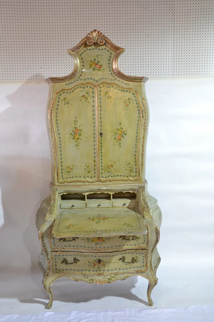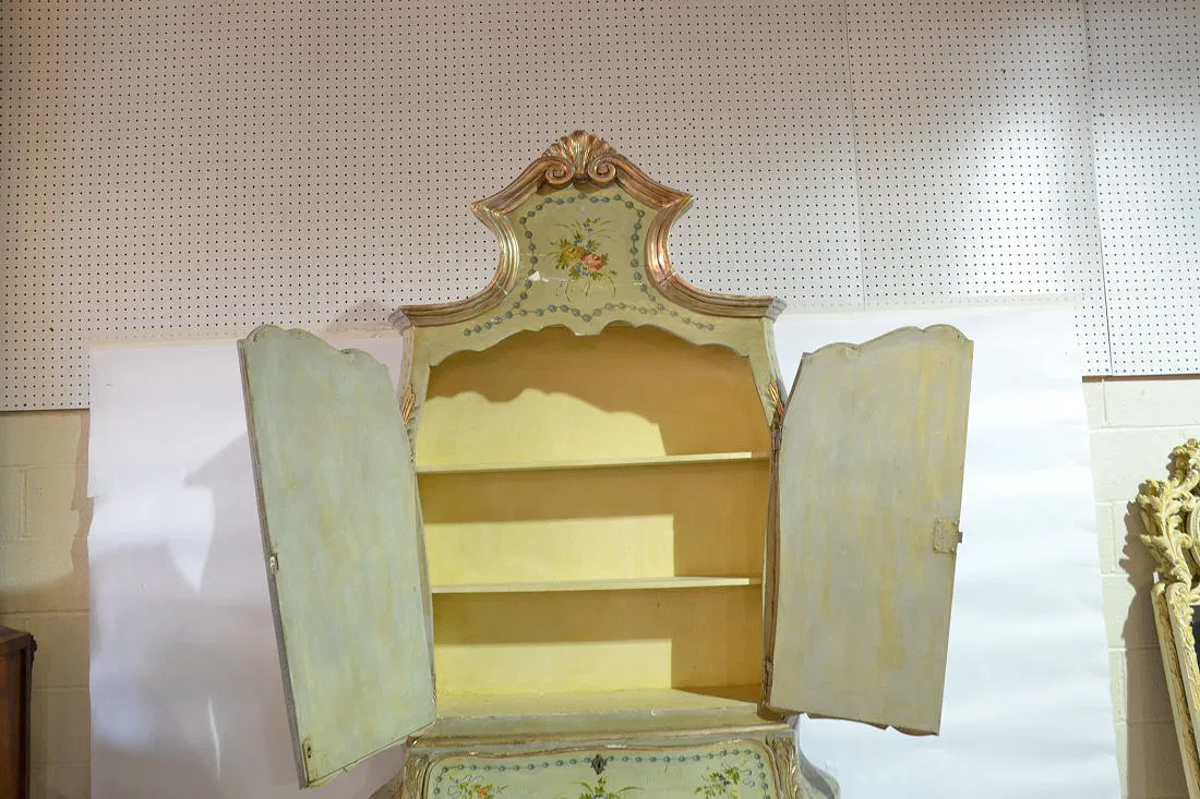 BOOKCASE & FLORAL DECORATIONS – 46″ x 20″ x 92″ (SOME PAINT LOSS)