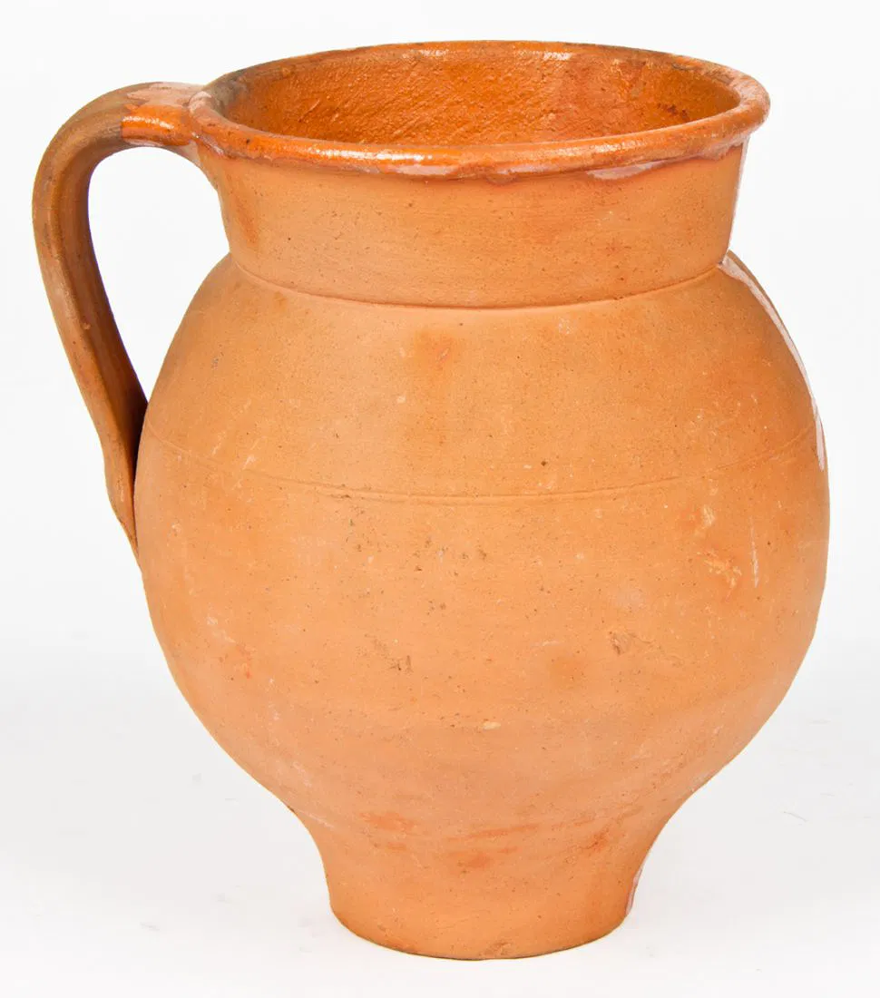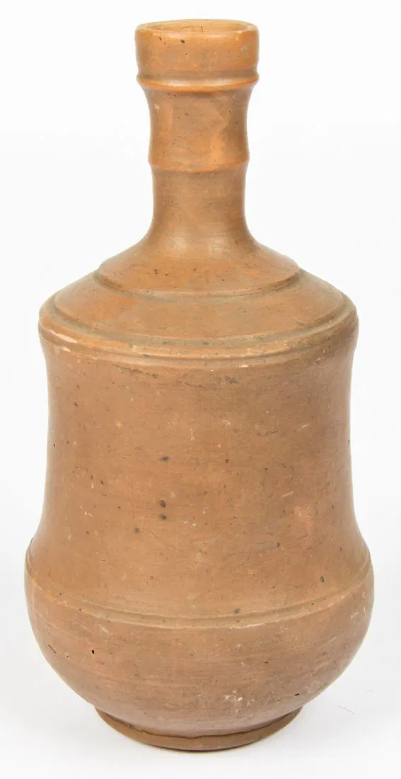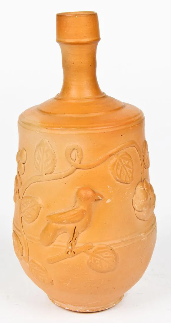 3 Brazilian earthenware vessels. Consisting of a single handled ewer/jar and two bottles one of which has applied decoration featuring a bird upon a twig with berries. Size: tallest 11″ x 5″ diameter (28 x 13 cm). Provenance: Private Philadelphia collection.