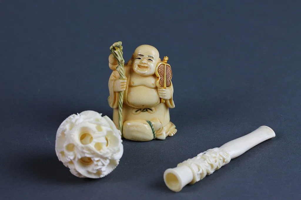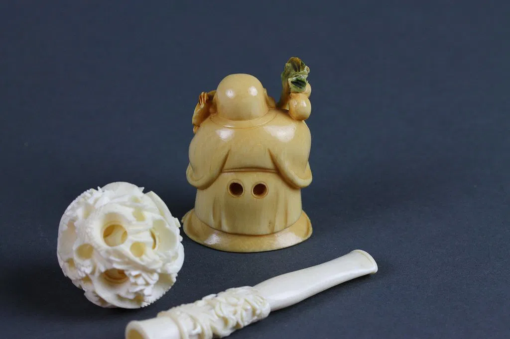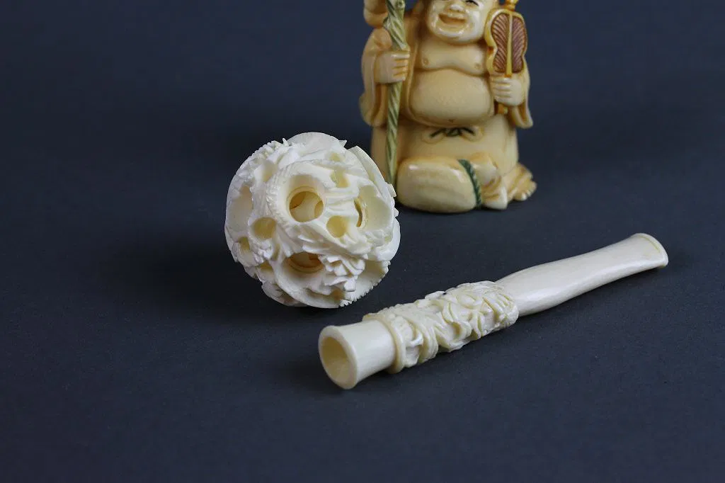 3.Carved Ivory Puzzle Ball,Netsuke, Cigarette Tip