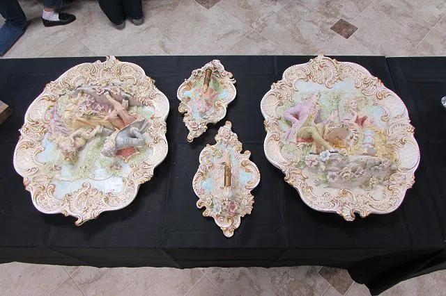 4pc Capodimonte Style Wall Plaques & Candle Sconce