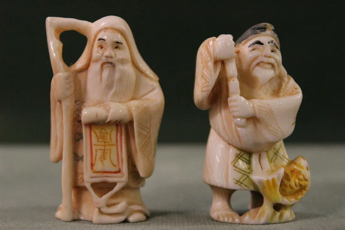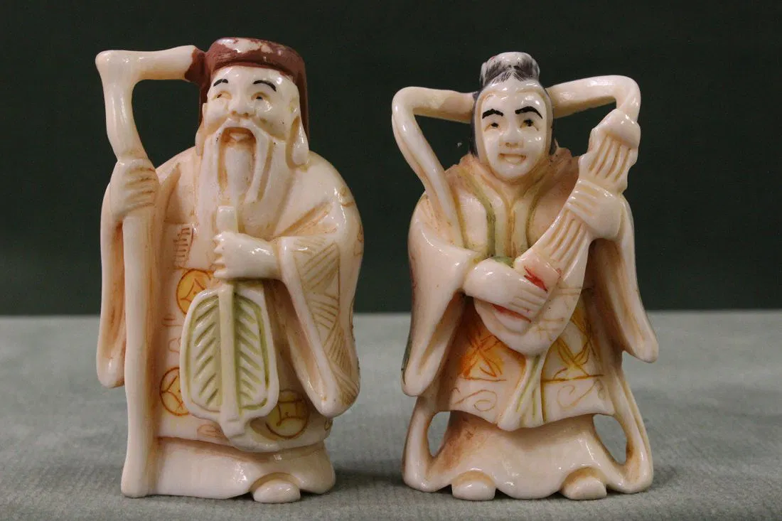 Be the first to review “7 Japanese ivory carved netsuke on stand”