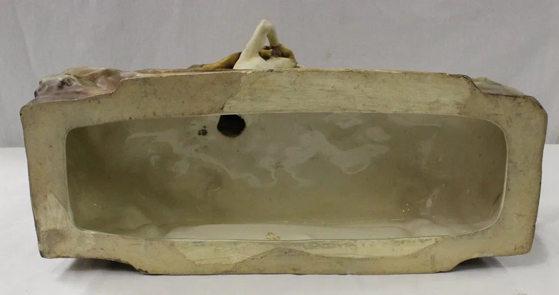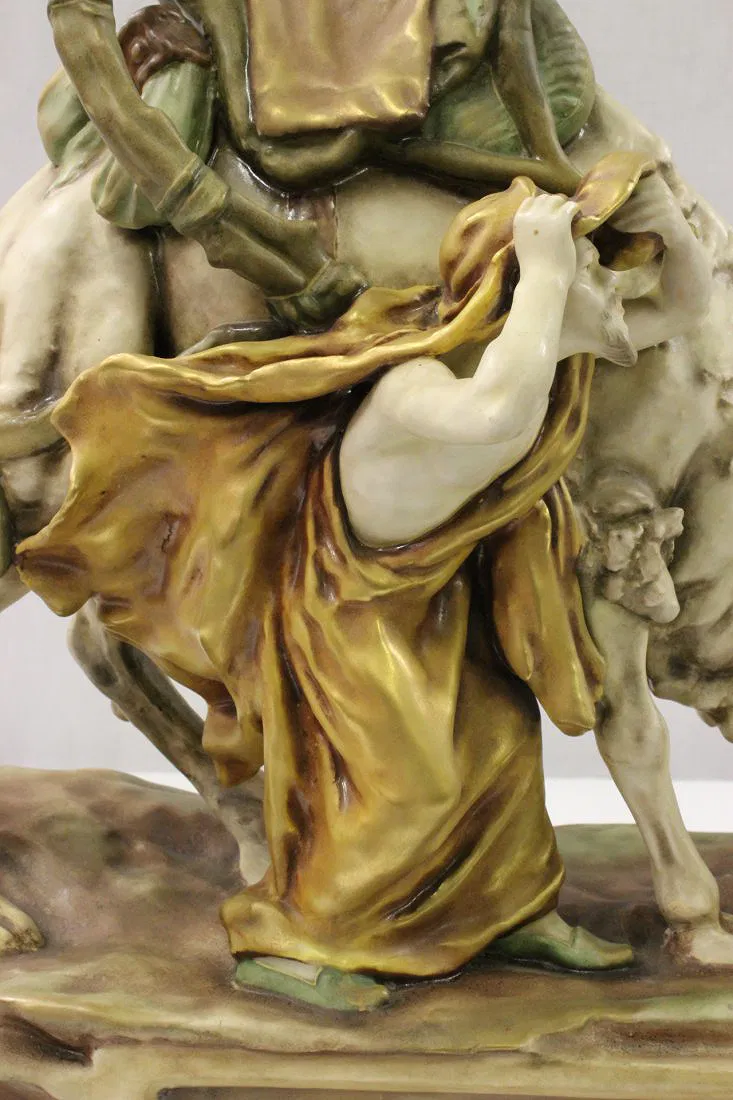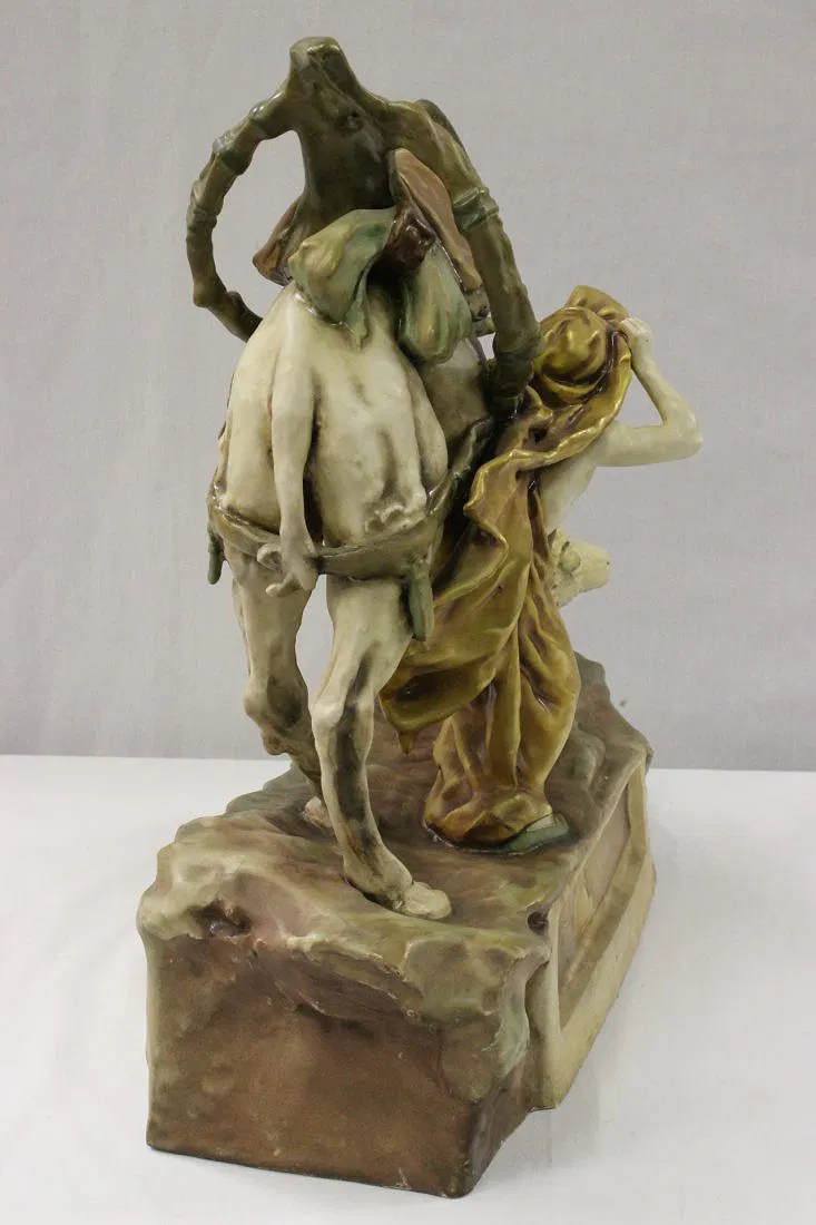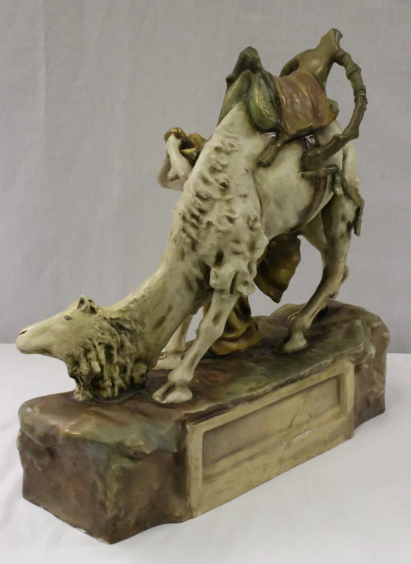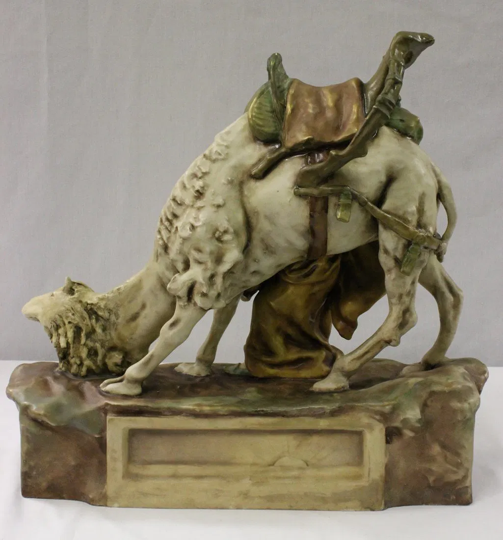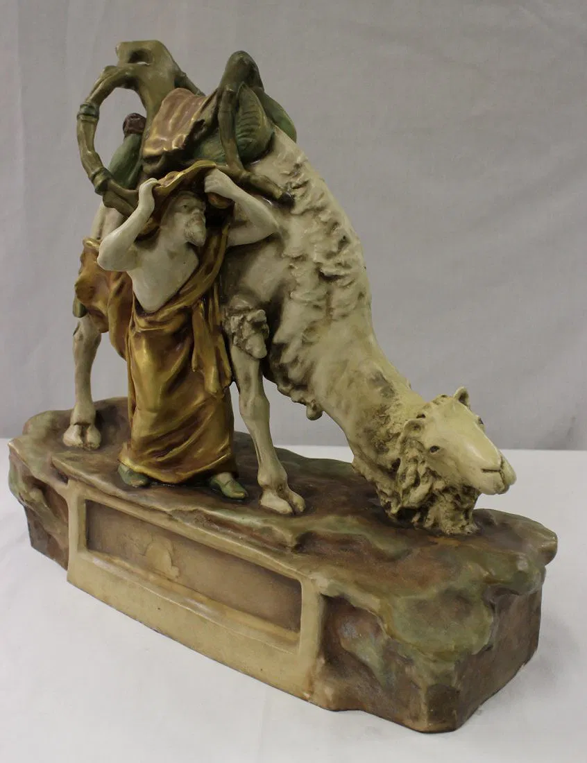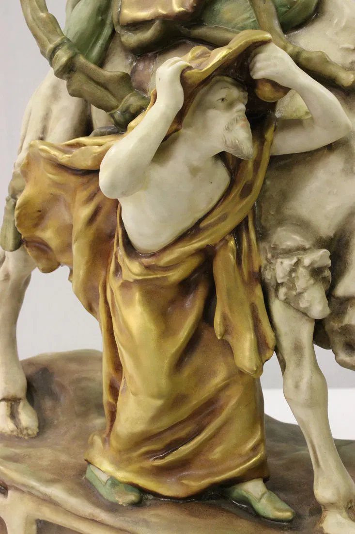 Antique Austria Amphora sculpture depicting man with camel by Reissner, Stellmacher and Kesser, c1900, 17.6″Hx19.5″x7″
