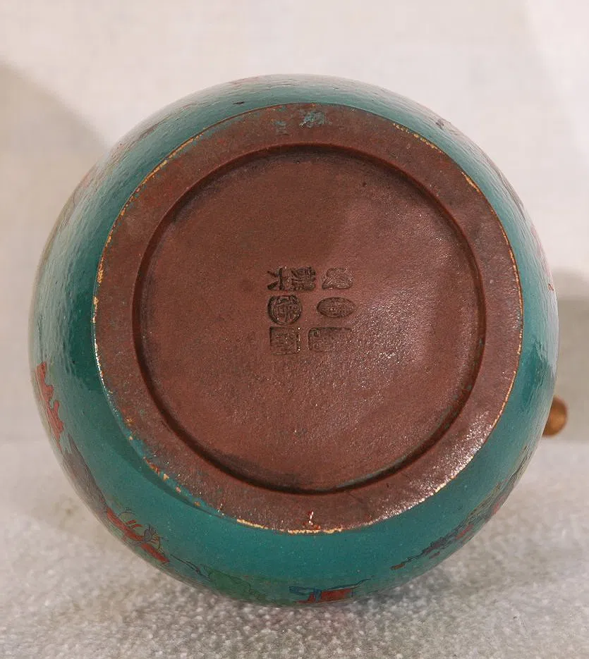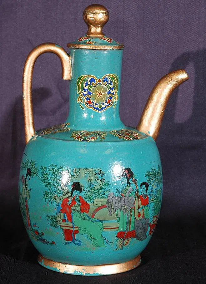 Antique Chinese pitcher made of ceramic. Hand painted with decorative asian women and flowers. 11″ x 6″ Qing Dynasty