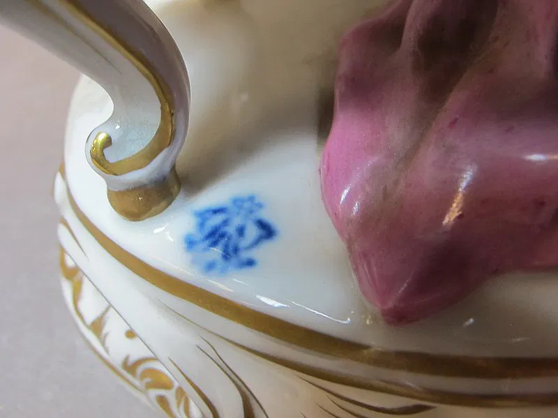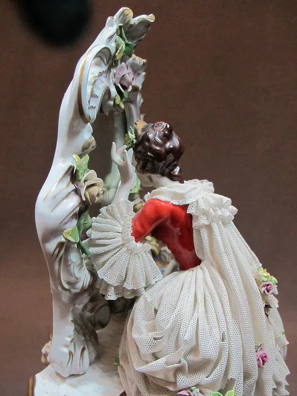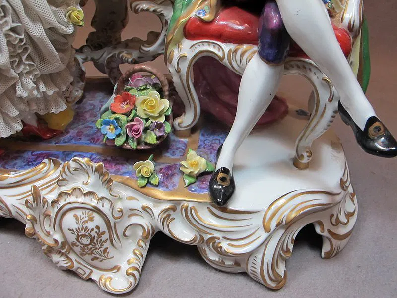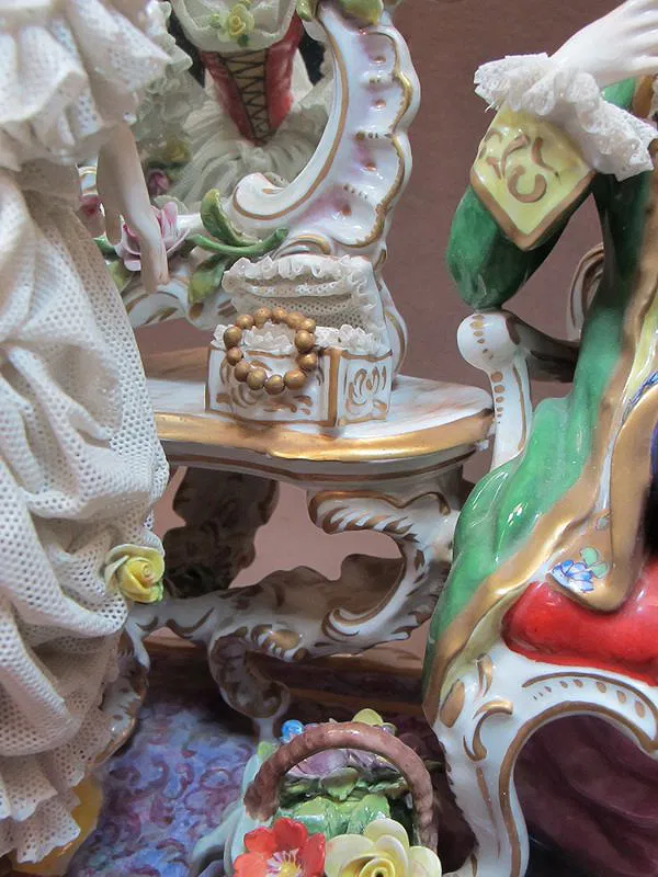 Antique German porcelain group, marked. 14“ H x 12 1/4” W.