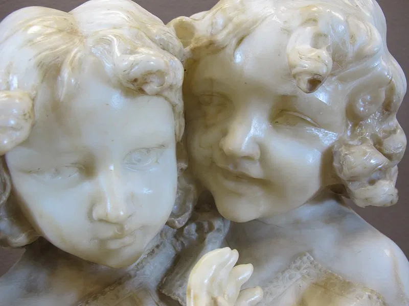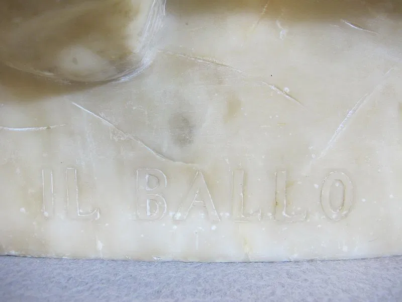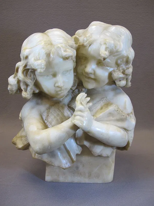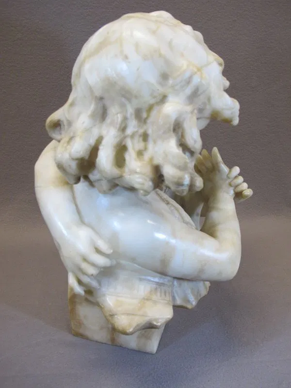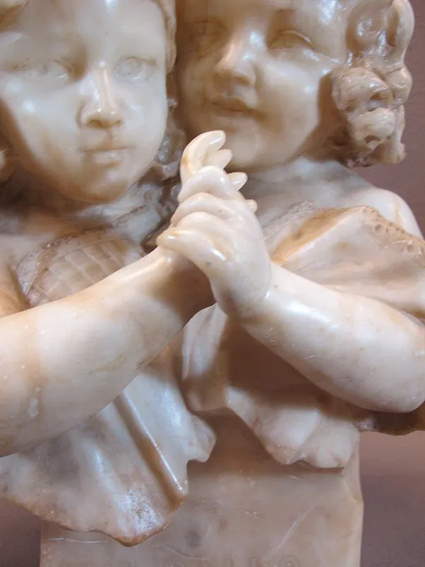 Antique Italian alabaster sculpture, titled: “Il Ballo”. 19” H x 14 1/2” W.