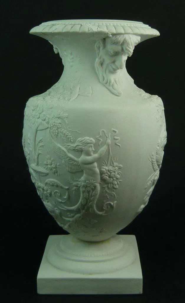 Item Details Description Antique Sevres blanc de chine allegorical vase. White bisque vase with allegory gold figures in relief. Early 20th century. Measures 8 1/2″ Height (21.59cm). Vase dates from the early 20th century. Total weight 1.1 kg.