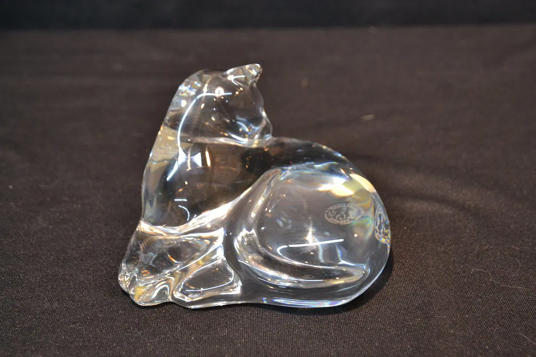 BACCARAT CRYSTAL RECLINING CAT – 4 1/2″ x 3″