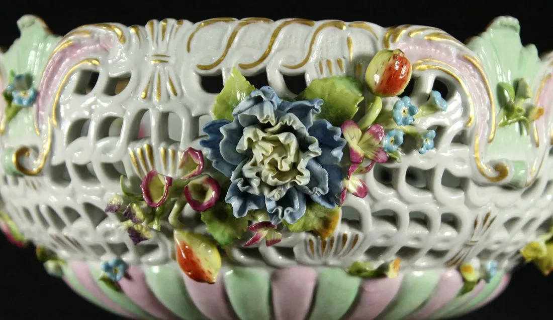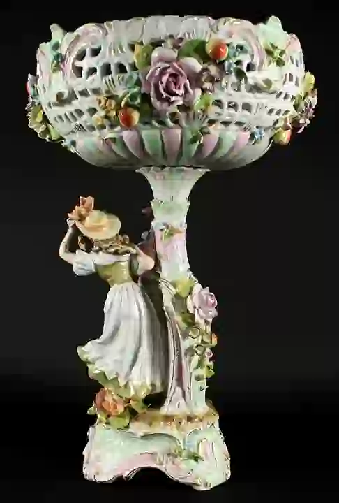 Beautiful German porcelain compote. Measures H: 40.6 cm × W: 25.4 cm.