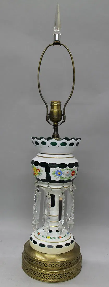 BOHEMIAN COLORED GLASS LUSTRE LAMP