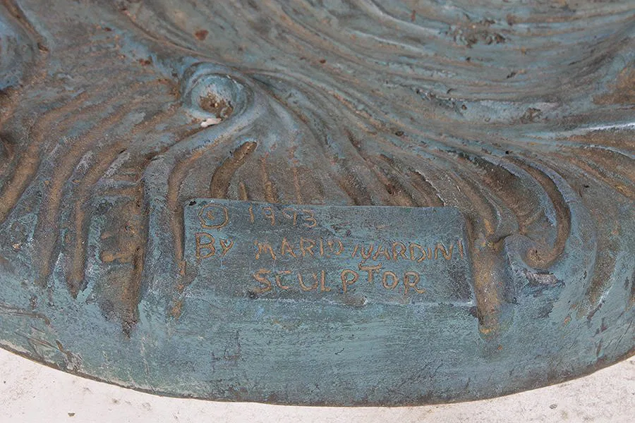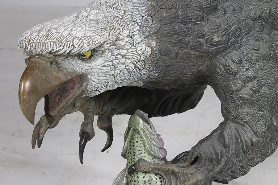 A bronze eagle in flight grasping a fish in it’s talon. Ht: 58″ Width: 54″ Depth: 37″