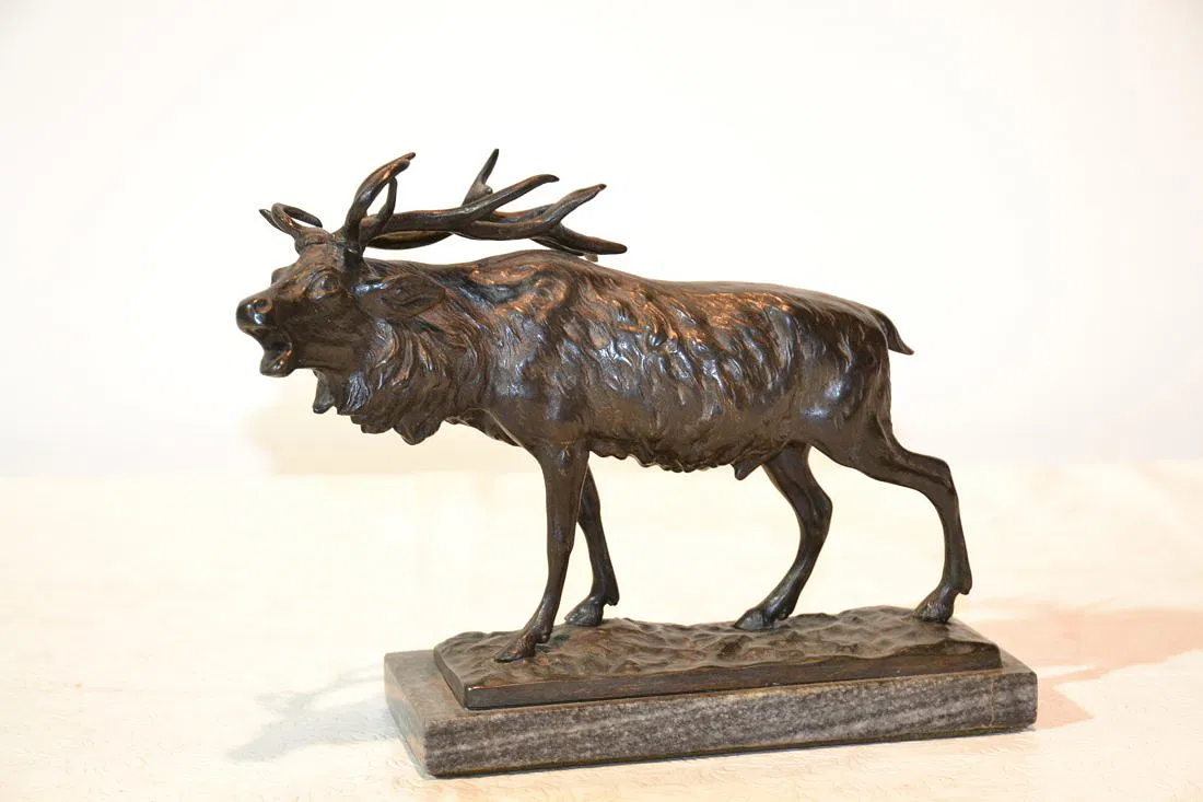 BRONZE STAG ON MARBLE BASE – 9″ x 6″