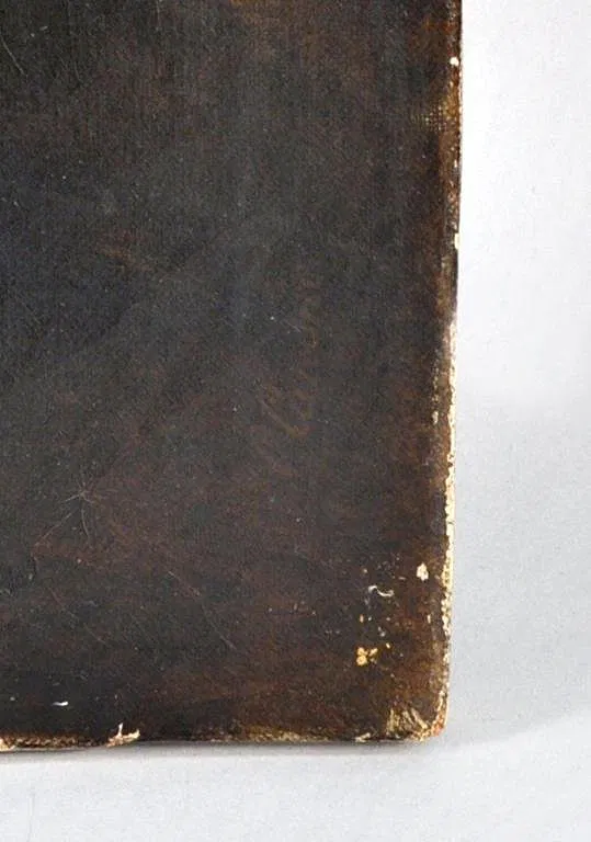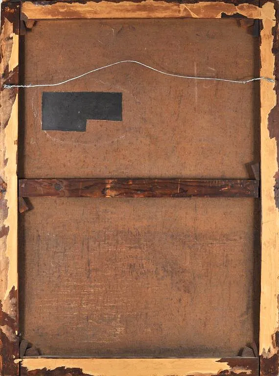 C. Canone large unframed oil on canvas depicting a gentleman peering into his mug. Signed lower right “C. Canone,” 19th century. Losses to paint and canvas punctures throughout. 39 1/2″ high, 29″ wide.