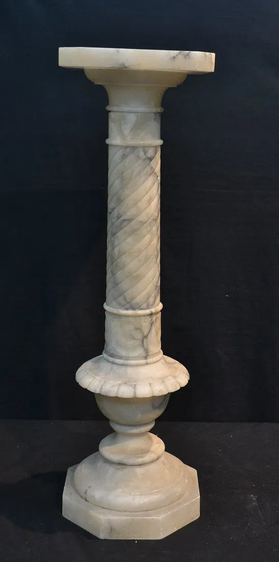 CARVED ALABASTER PEDESTAL – 10″ x 33 3/4″