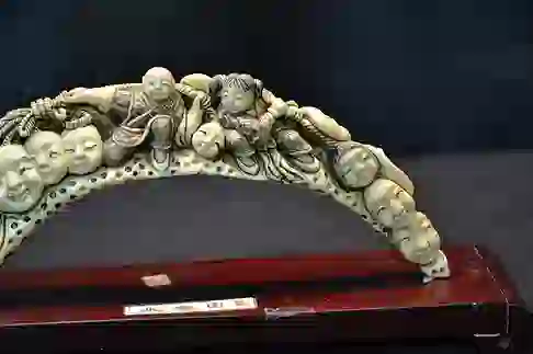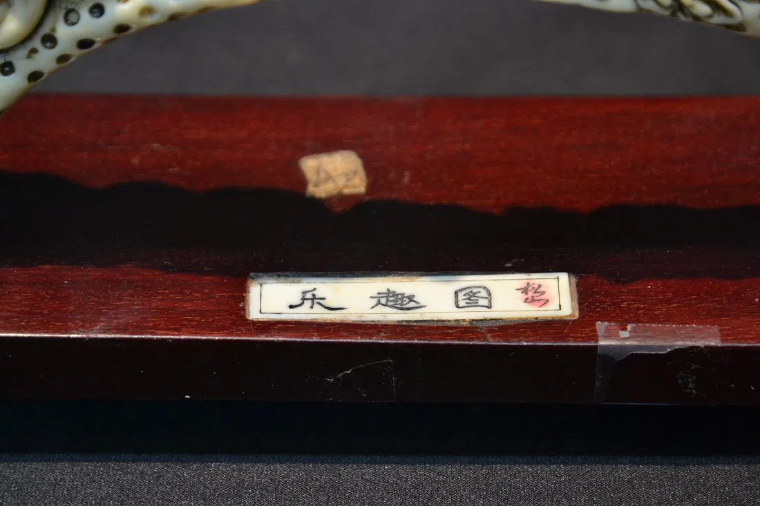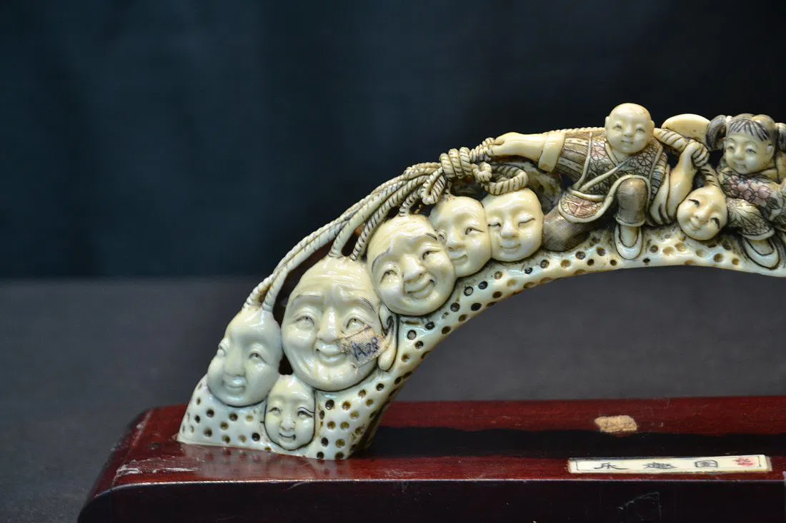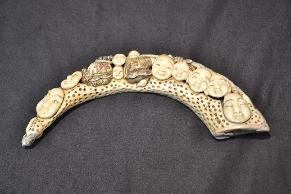 CARVED HIPPO IVORY BRIDGE DEPICTING CHILDREN