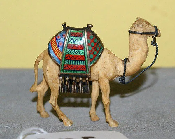 Chinese 19th c ivory and cloisonne camel. H:1.5″