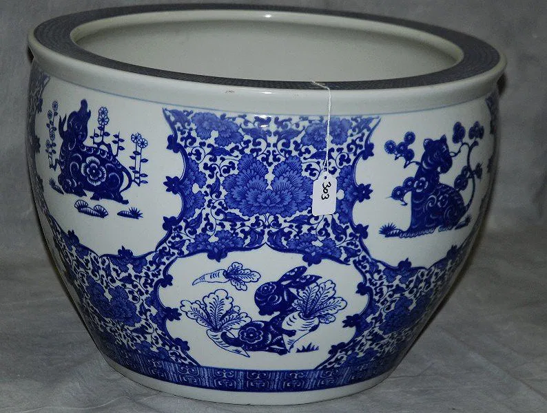 Chinese blue and white porcelain fish bowl. H:14.5″ D:21″