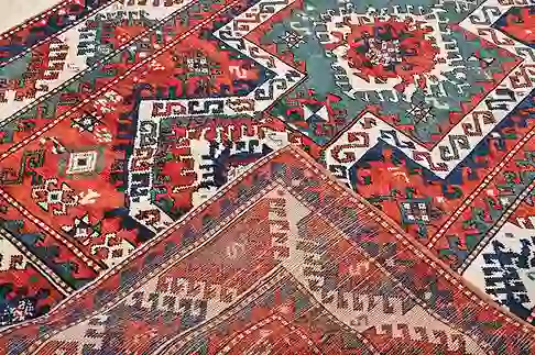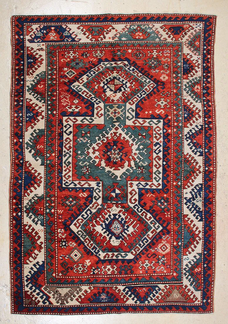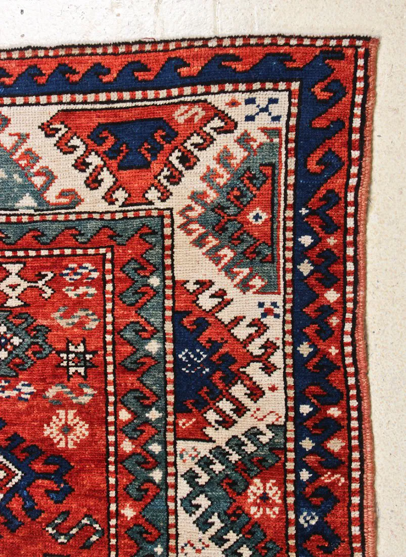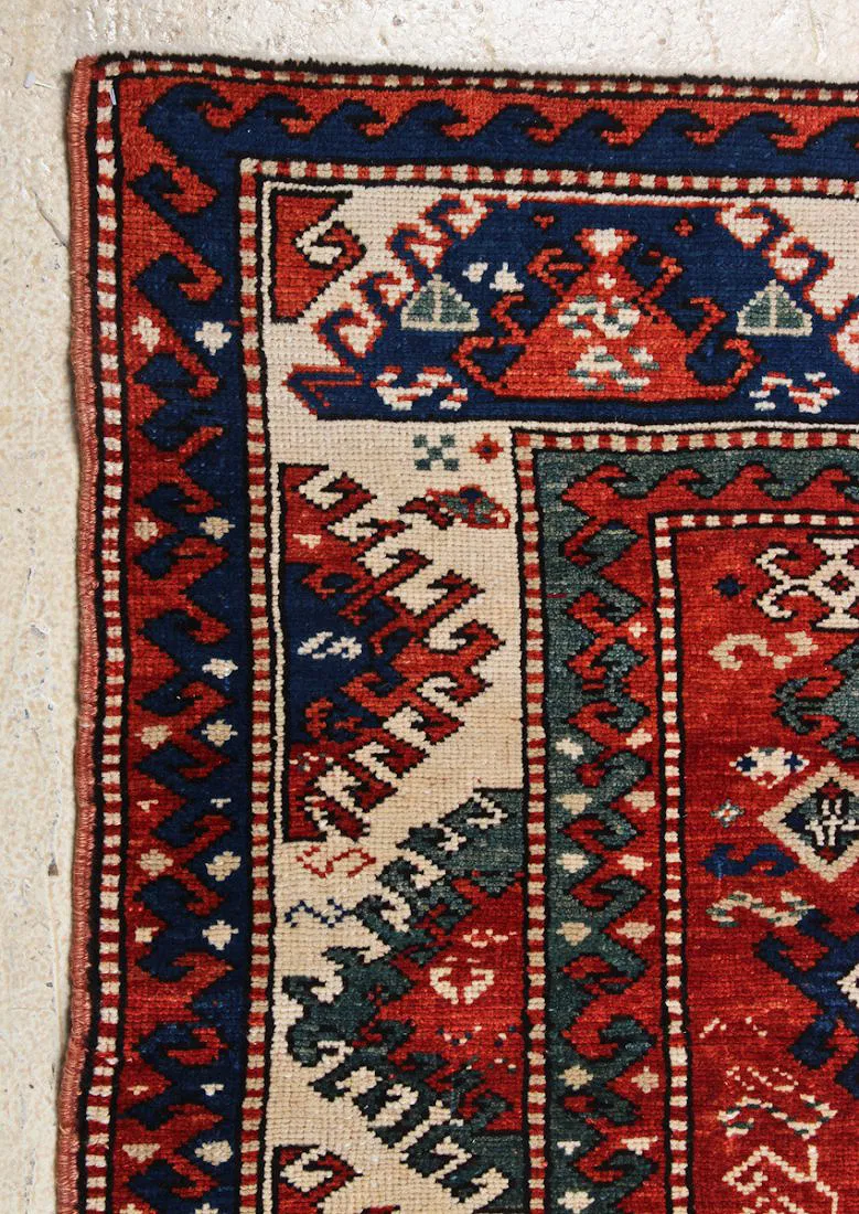 Classical Sewan Style Kazak, Turkey, modern, excellent condition and color. Size: 5′ 1″ x 7′ 6″.