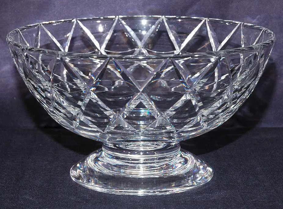 Crystal bowl, 9.5″ in diameter with beautifully carved linear design on pedastool.
