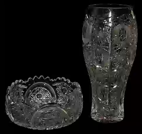CUT CRYSTAL FRUIT BOWL & FLOWER VASE, H 11″