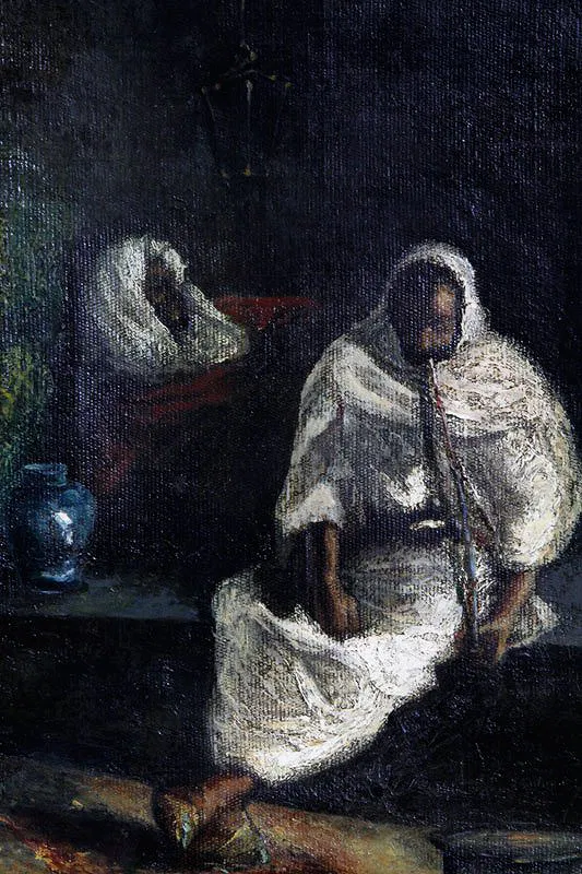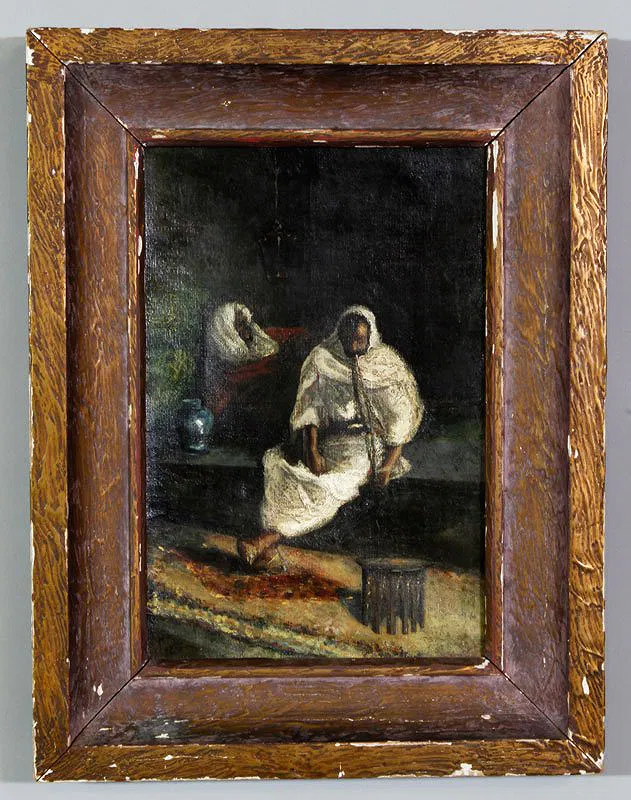 Fortuny, “Middle Eastern Men Smoking Hookah”, oil on canvas, signed lower left, from the estate of David Grase Wenham.