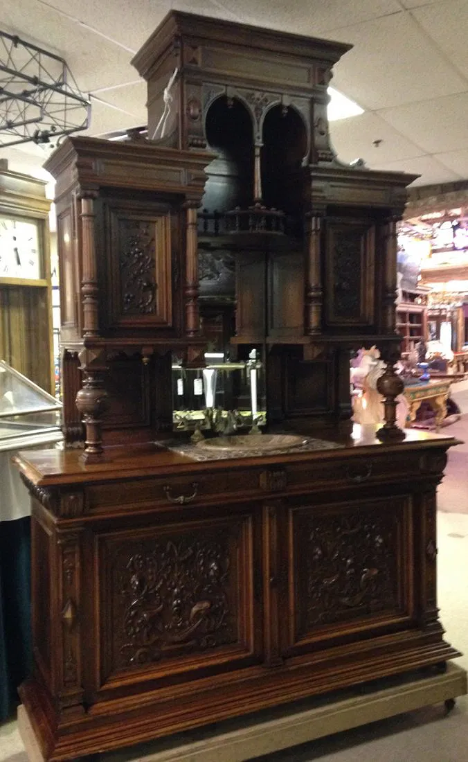 Unusual French buffet with built in sink. Measures 104″x73″x23″