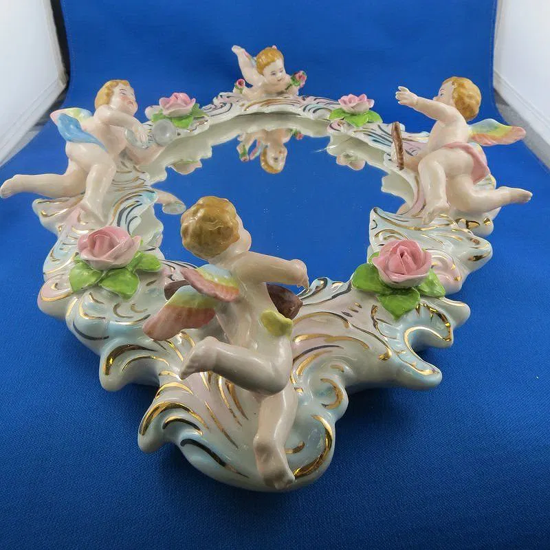 German Porcelain Hand Made Mirror. Measures – 15 1/2″ high x 11″ wide.