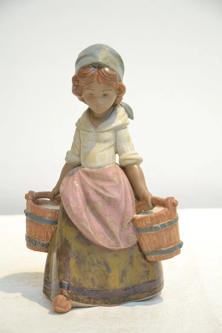 GRES FINISH LLADRO GIRL WITH MILK BUCKETS – 9″