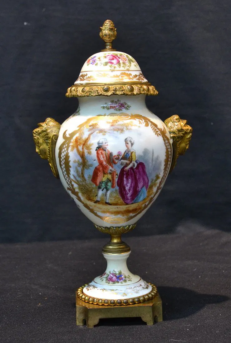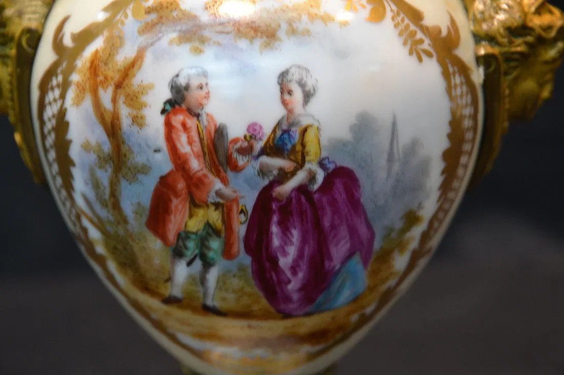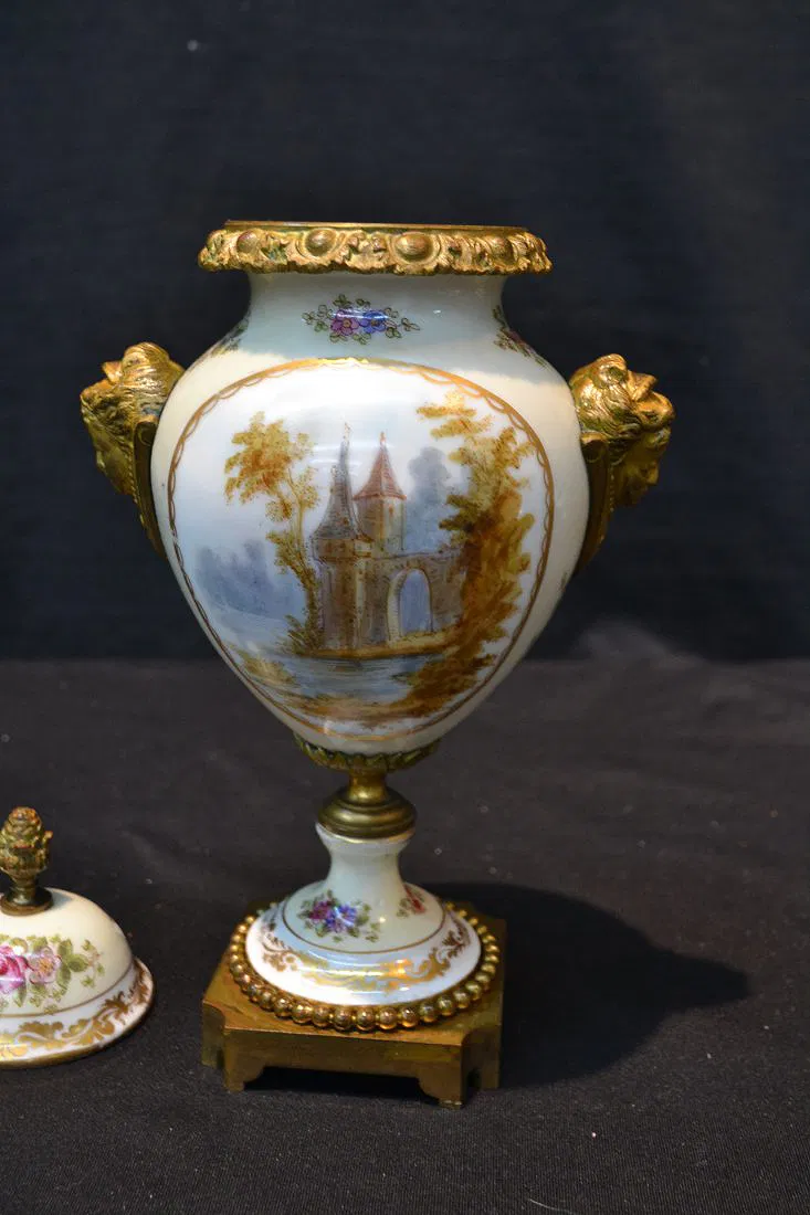 HAND PAINTED FRENCH SEVRES STYLE COVERED URN