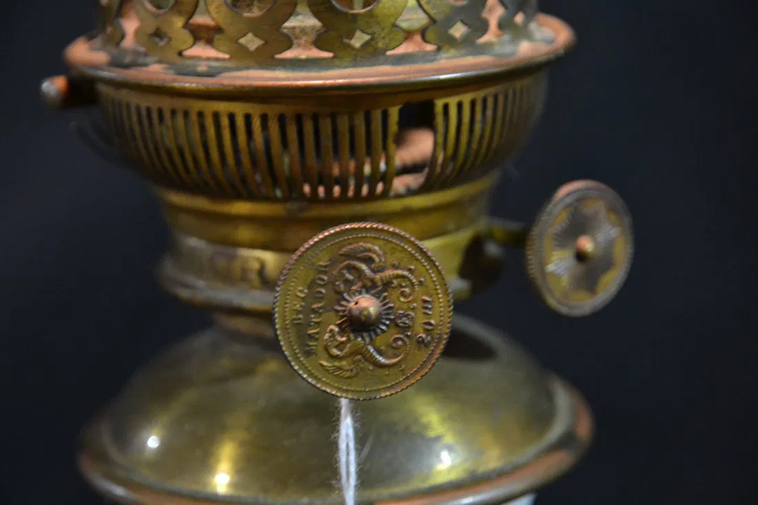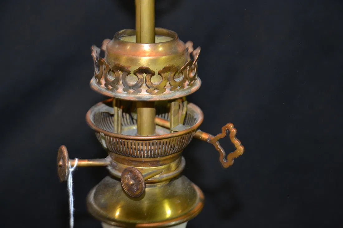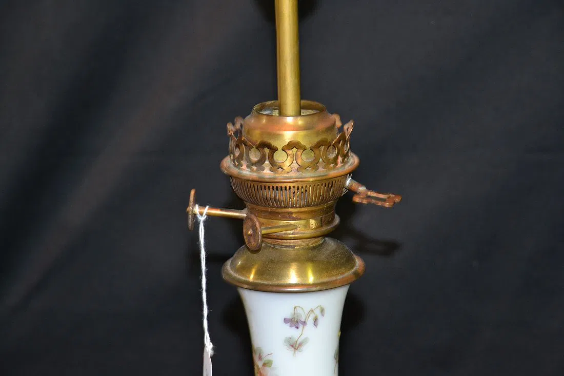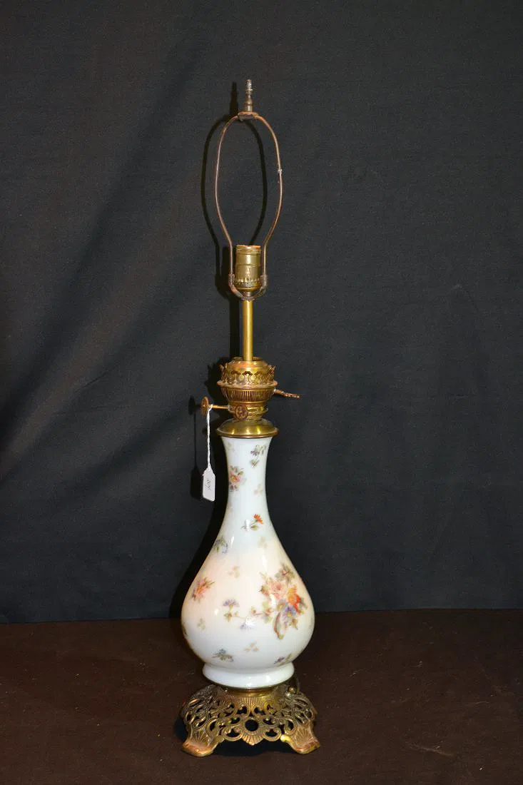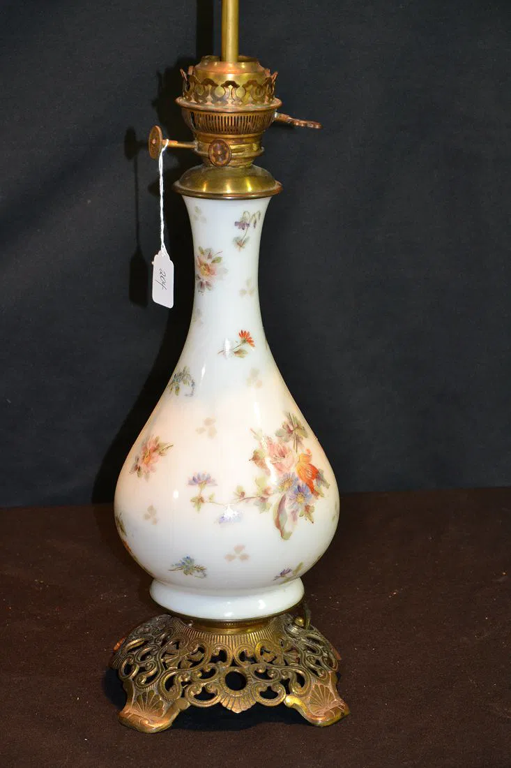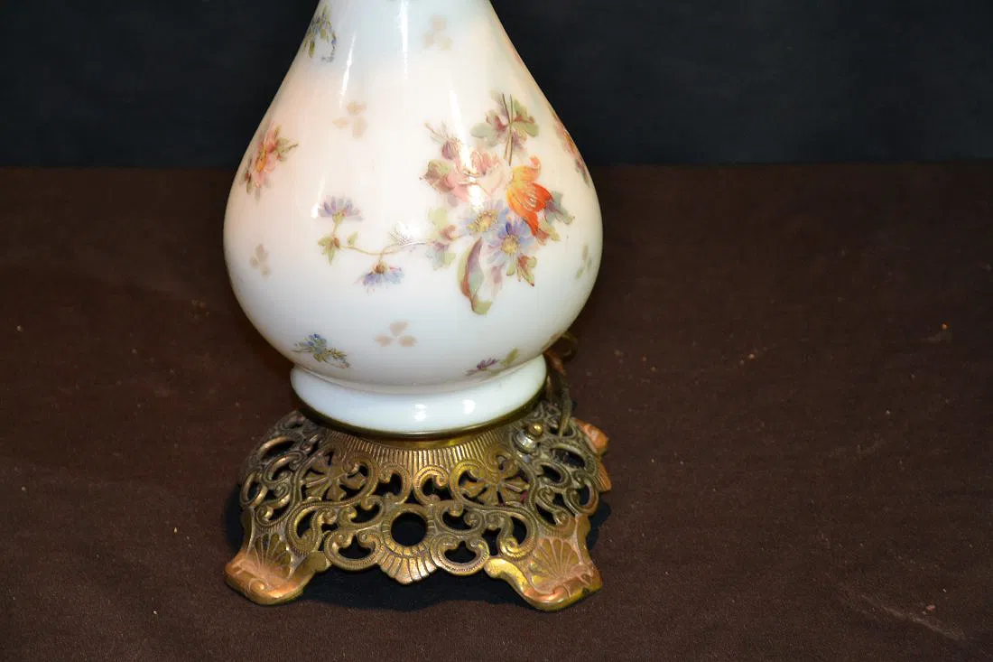 Be the first to review “HAND PAINTED OPALINE CONVERTED OIL LAMP BY”