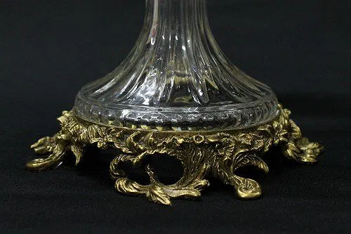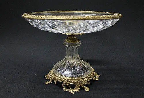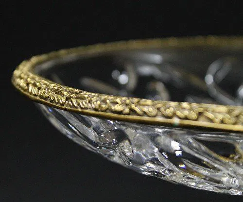 ITALIAN LEAD CRYSTAL BOWL – BRASS TRIM AND BASE – HAND CUT LEF DESIGN ON CRYSTAL – 10L” x 10W” x 12H”