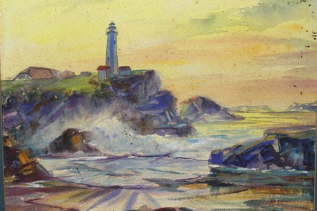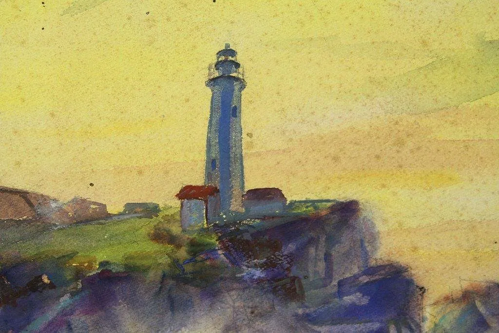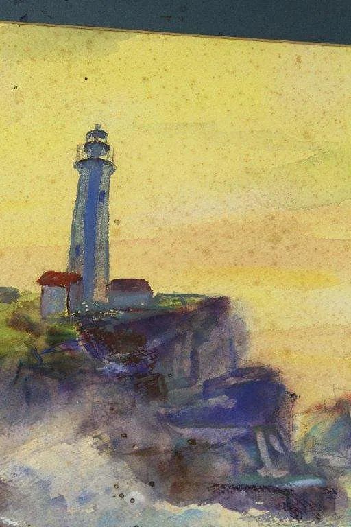 Lighthouse in a Coastal Seascape, watercolor on paper, signed lower right.