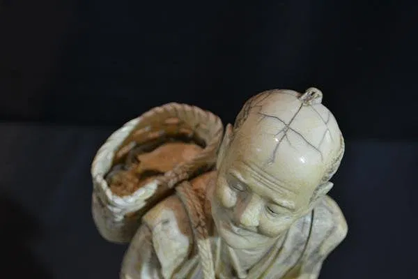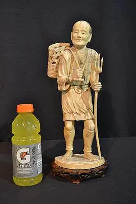 LARGE ANTIQUE JAPANESE IVORY FIGURE OF MAN