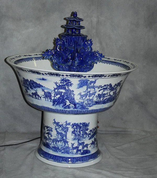 Item Details Description Large Chinese blue and white porcelain fountain. H:36″ D:34″