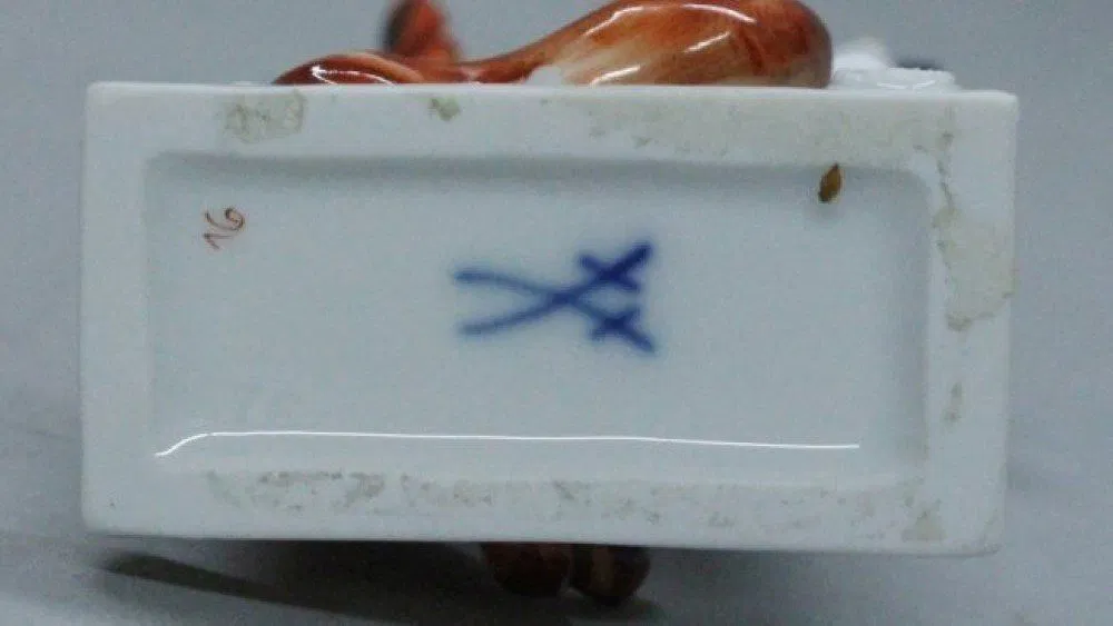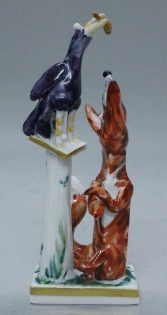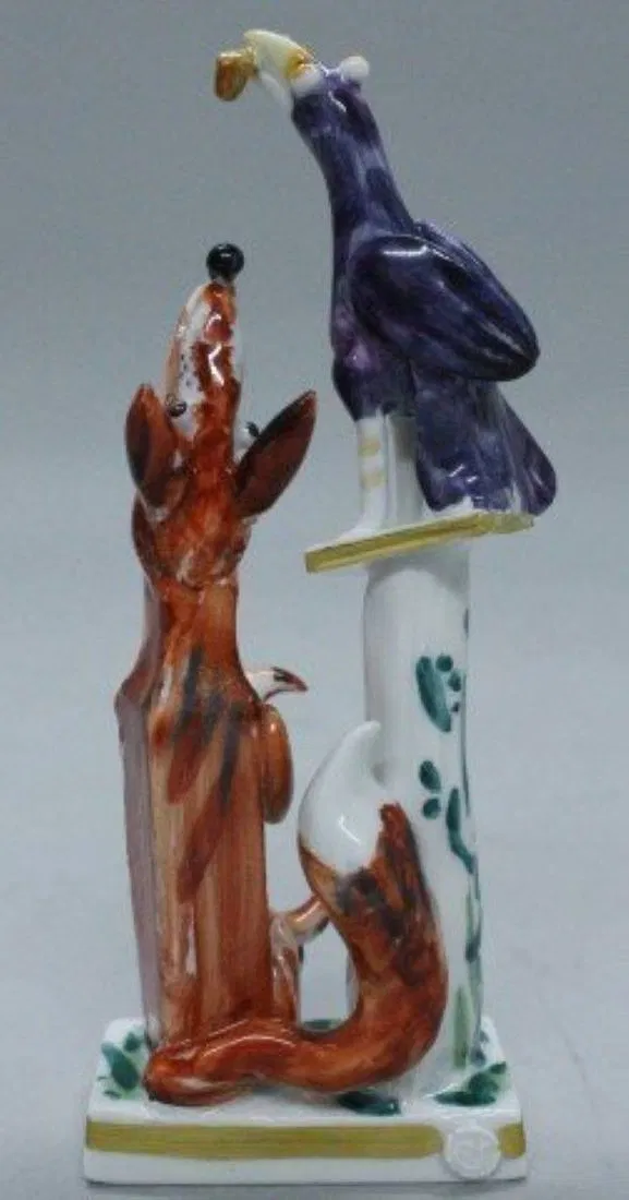 Meissen Figure Of The Fox And The Crow. H: 4 3/4″.