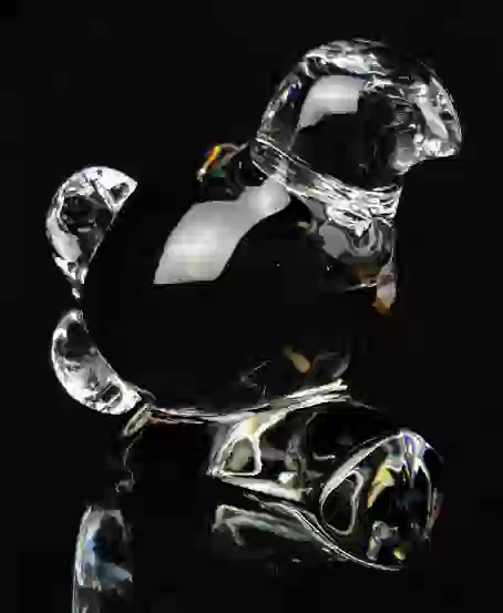 LARGE ORREFORS SWEDEN CRYSTAL BIRD ON STUMP FIGURINE Measures Approximately 10 Inches Tall,
