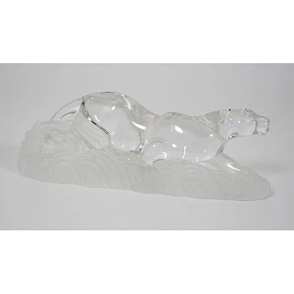Glass panther with Lenox mark Lenox/ Fine Crystal/ Made in Germany; Ht. 4 in., lg. 11.25 in.
