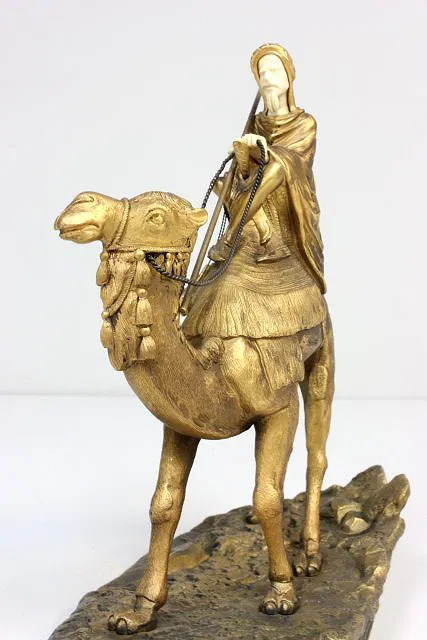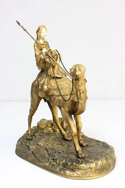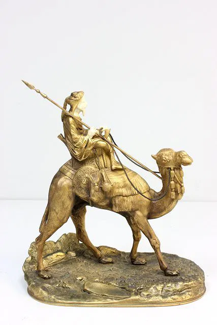 Depicting Arab on camel, circa 1900. Approx. 9.5″ H. X 10.5″ to top of spear.