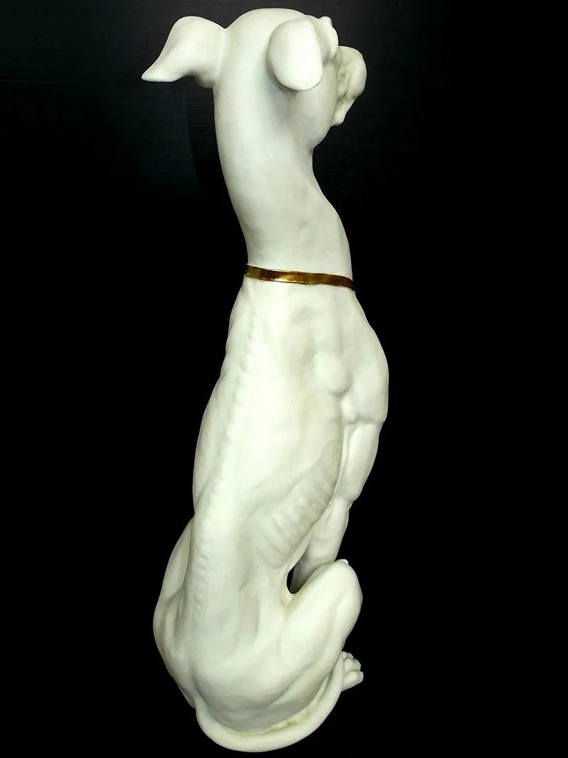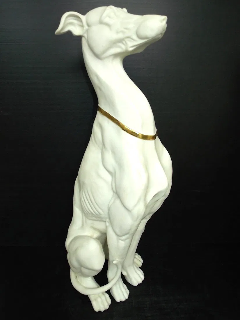 FOR AUCTION IS THIS AMAZINGLY DECORATIVE AND HIGH QUALITY STATUE OF A GREYHOUND DOG. THE STATUE STANDS 31″ TALL BY 10″ WIDE, BY 11″ LONG. STATUE IS MADE OF RESIN WITH A MARBLE FINISH. GREAT PIECE TO ADD TO A NICE COLORFUL GARDEN OR TO AN ENTRANCE WAY. SHIPPING AND HANDLING IS $75 WITHIN THE CONTINENTAL U.S. ALL OTHER STATES AND COUNTRIES PLEASE CONTACT FOR SHIPPING QUOTE.