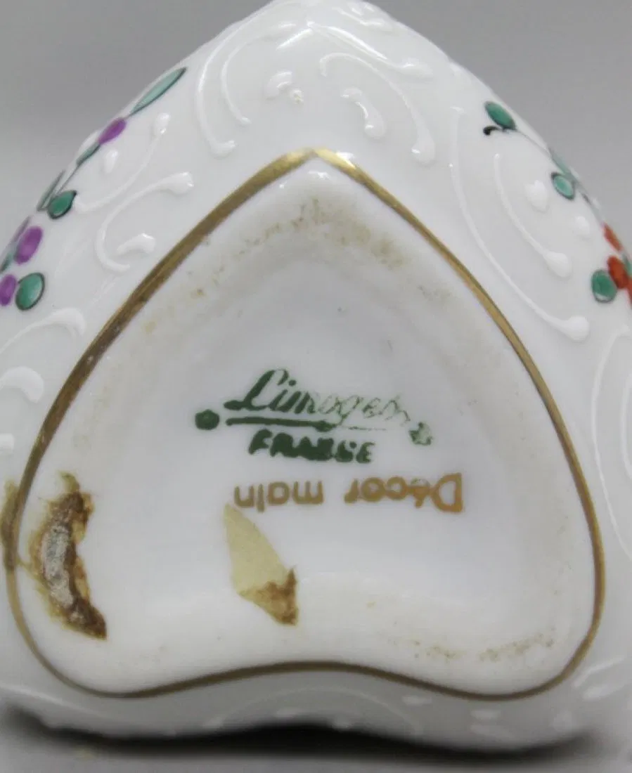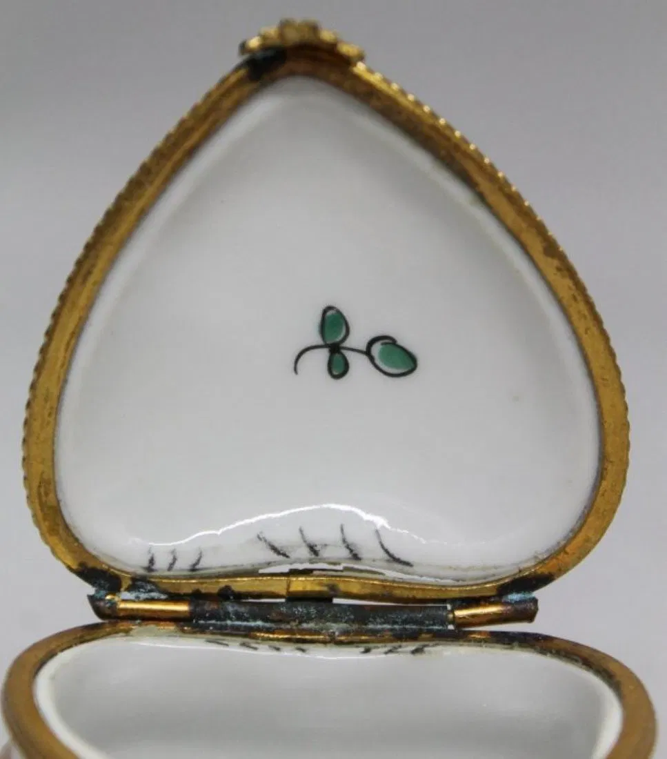 LIMOGES HEART SHAPED BOX . MEASURES H: 1 1/4″ W: 2 1/4″