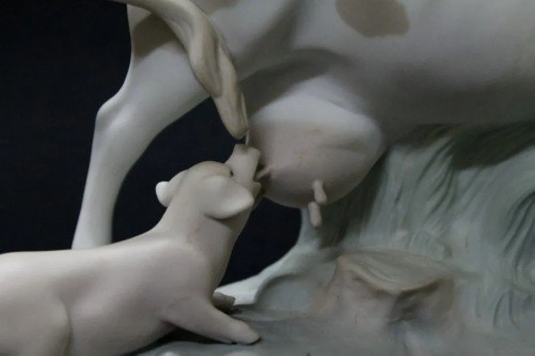 LLADRO FIGURE OF COW. MEASURES H: 5 3/4″ W: 8 1/4″