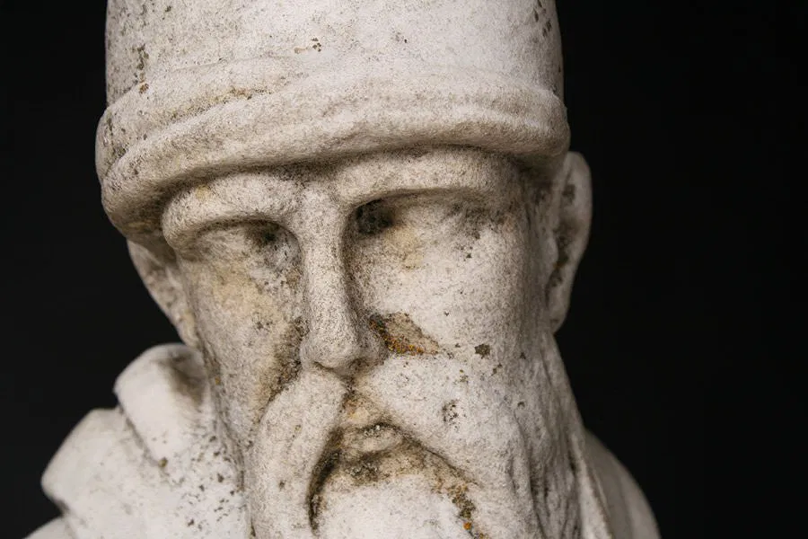 MARBLE FIGURE OF BEARDED MAN IN ROBE 19TH C.
