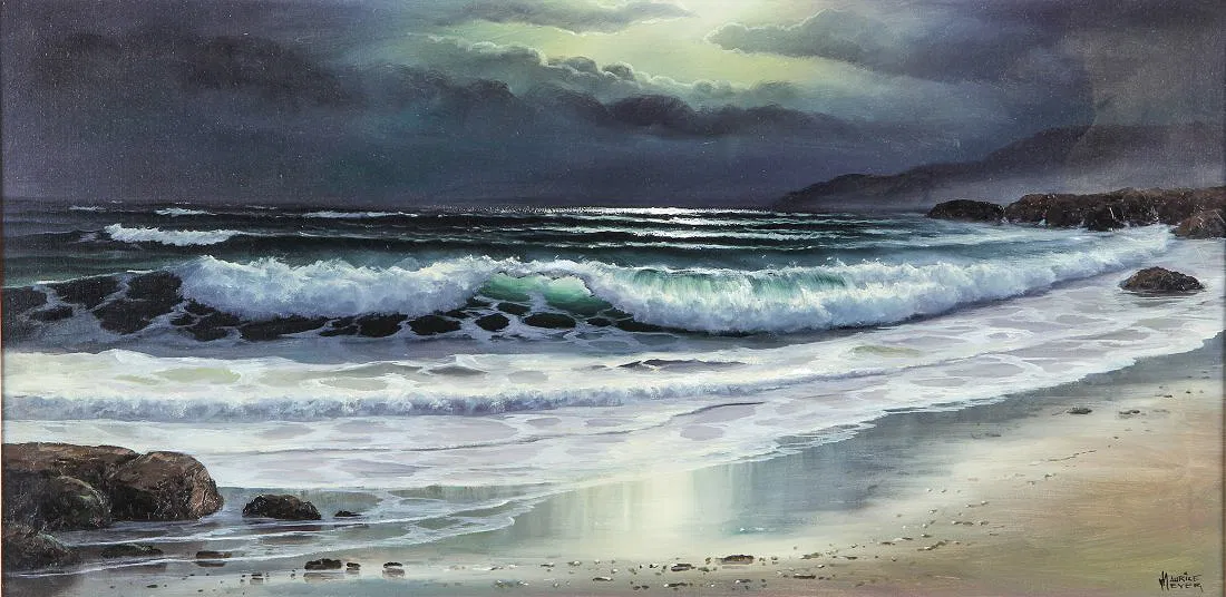 Maurice Meyer, Moonlit Seascape, Oil on Canvas