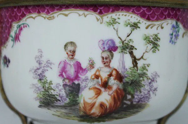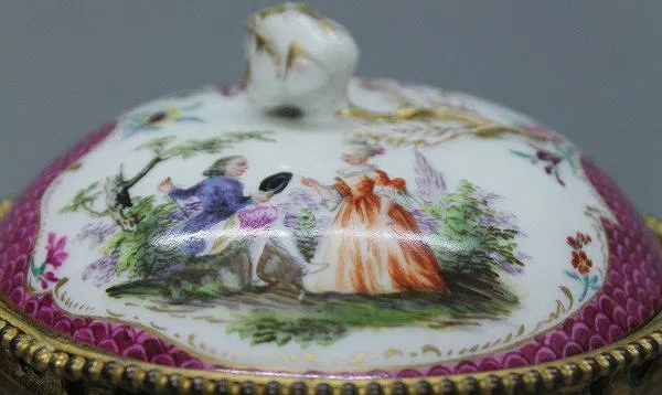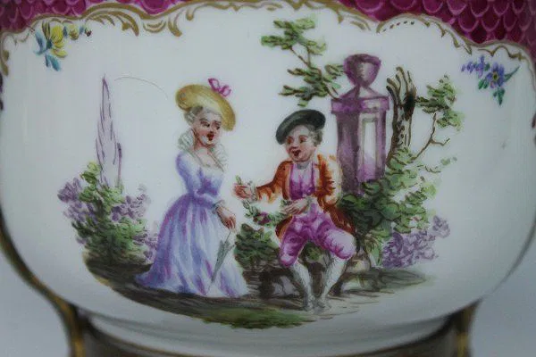 MEISSEN VASE WITH LID. MEASURES H: 8 1/2″ W: 6″. NO INTERNATIONAL SHIPPING ON IVORY