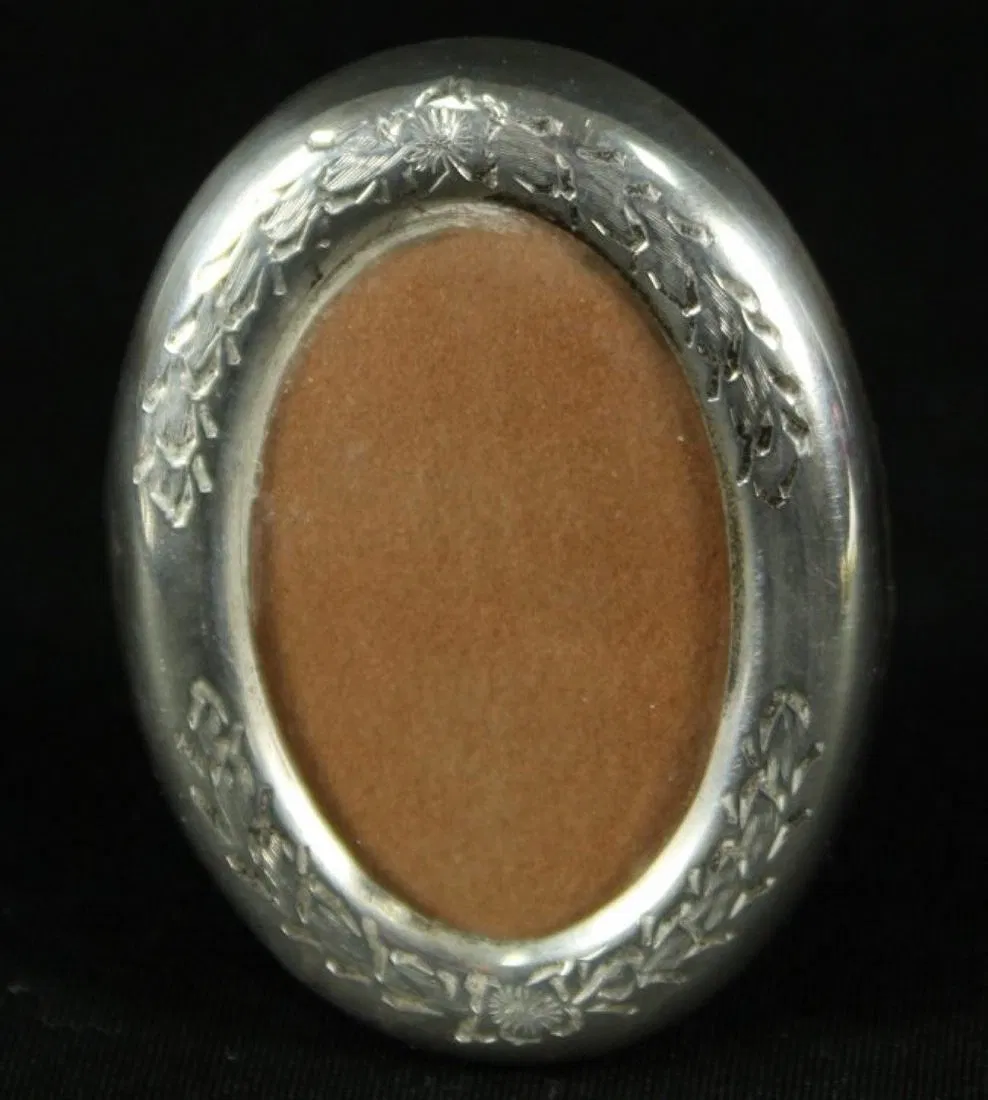 MEXICAN SILVER MINIATURE PHOTO FRAME. MEASURES H: 2 1/2″ W: 1 3/4″