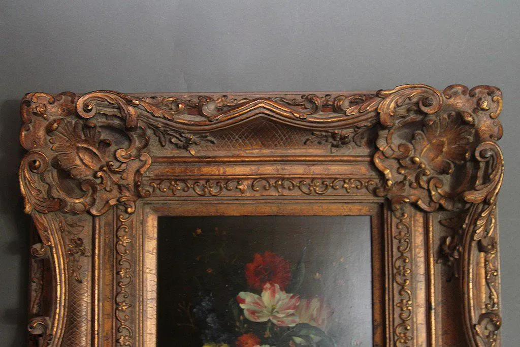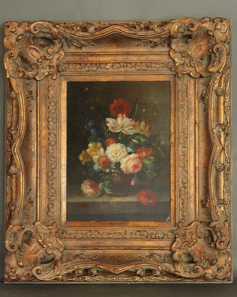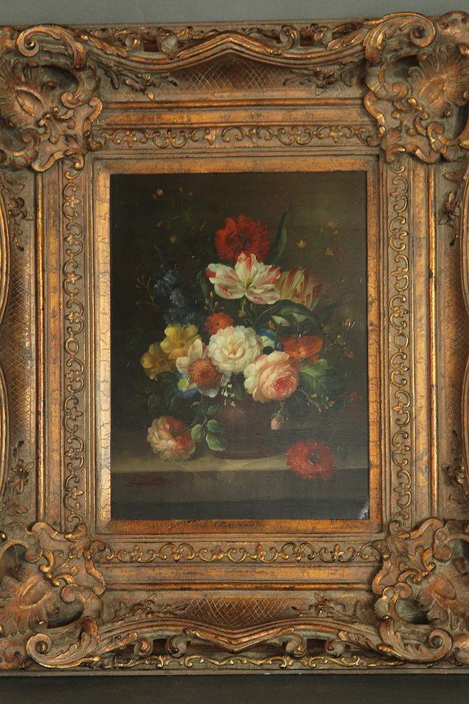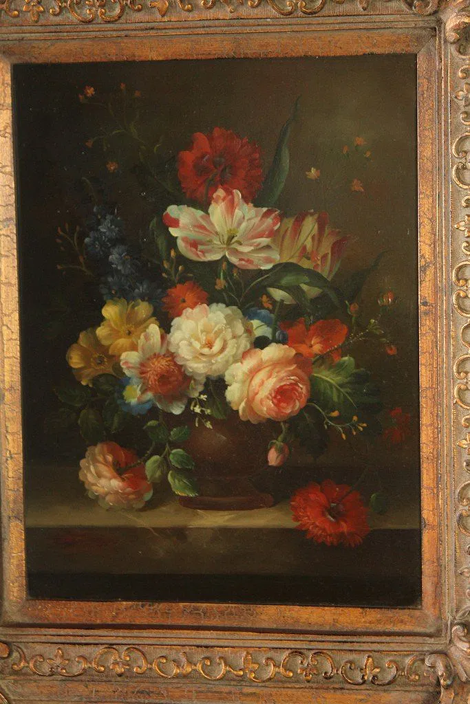 OIL FLORAL STILL LIFE PAINTING SIGNED Mid-20th c. oil on board