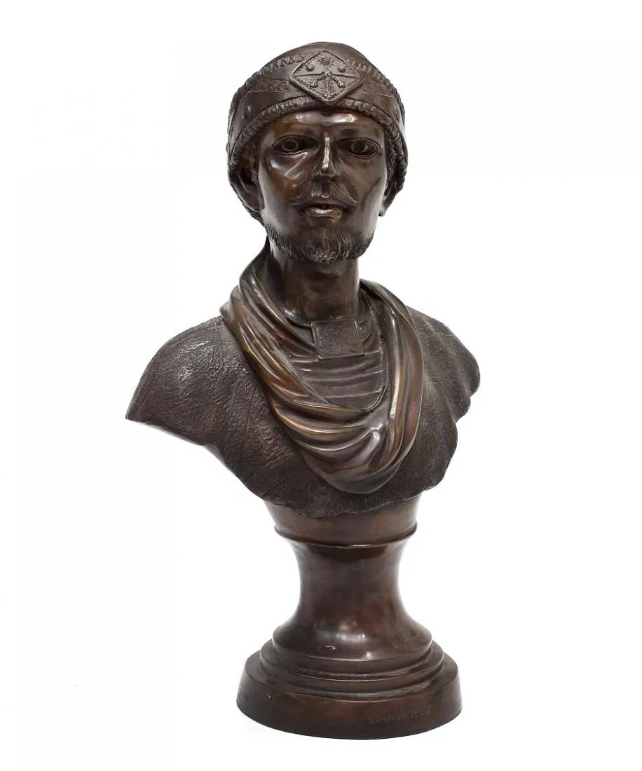 Orientalist bronze bust, figure of a man, signed at base “Coundray”, 25.5″h, 15.5″w, 8.5″d