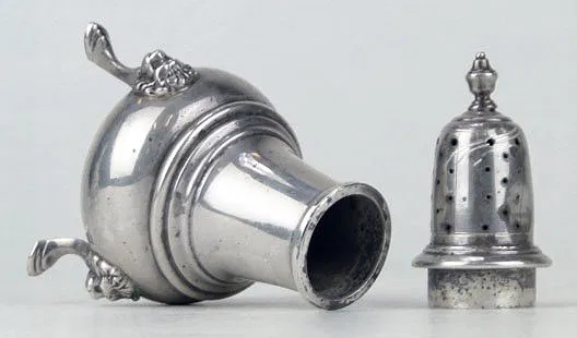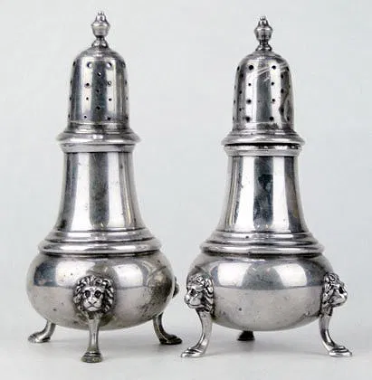 PAIR ANTIQUE STERLING SILVER SHAKERS Stands On 3 Lions Feet Measures Approximately 5 Inches Tall Weight 8toz,